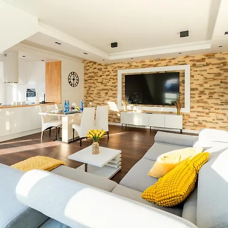 The spacious Apartament Skyline - Przy Placu Piastowskim I Blisko Term, Widok Na Sniezke, Garaz Podziemny By Apartamenty W Karkonoszach Jelenia Gora is located 350 metres from Spa Park and an 8-minute walk from Edward Pavilion in Cieplice. This apartment is situated 8 km from Jelenia Góra train station and just near Cervi - Sanatorium bus station.